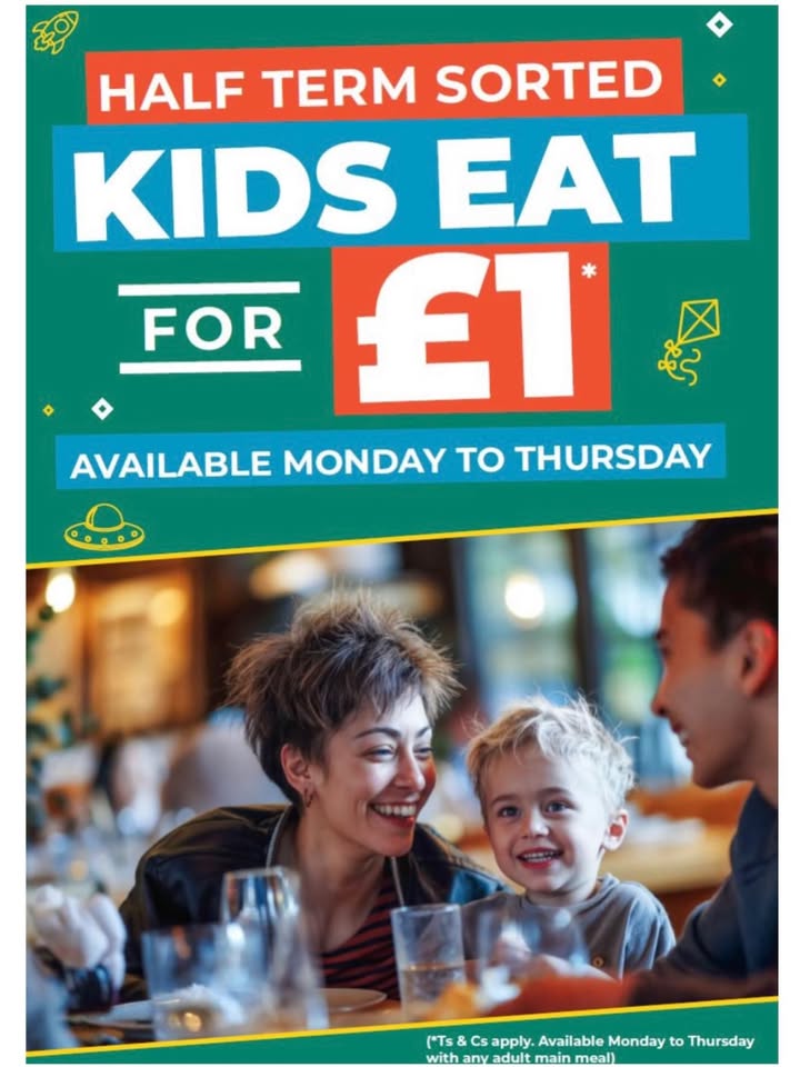 For every paying adults meal kids eat for £1 that’s half term sorted 👦🏽👧🏻