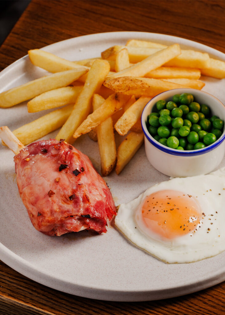 5oz gammon & egg, with chips and garden peas | 10.49 970 kcals